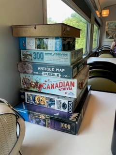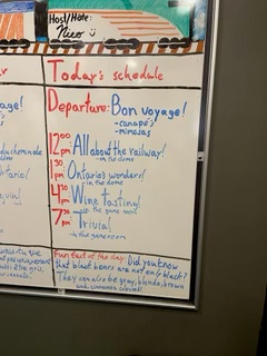 So instead, my son drove me to the local TTC stop where I sat on a very crowded noisy bus with my pink suitcase taking up the aisle, my knapsack straps cutting into my shoulders and my coffee and water bottle teetering on my lap…. Quite a sight. But I did have on my very pretty hat!. By the time I made it into Union Station and handed off my suitcase to the baggage desk staff, I had already logged 4700 steps as recorded on my Iphone 12… Good thing, though, as the only steps I’d be taking over the next 4 days would be back and forth along the train corridor to the dining car and activity car…….
